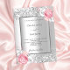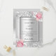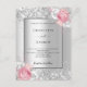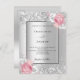 Faux silver looking background decorated with blush pink and white florals, flowers and faux silver glitter, sparkles. Personalize and add your names and wedding details. Black letters.