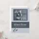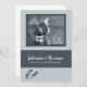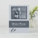 Soft silver pinstripes offer an elegant touch to this gay wedding invitation with a ring and rose photograph courtesy of Photos8 and custom text on both the card front and inside making it perfect for two grooms or two brides.
