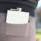 The flask itself is fine. It’s a cheap flask, obviously bought in bulk, however am prepared to overlook that. Given that it is a personalized item, I would have liked to have seen gift boxing instead of the generic packaging. Terrible printing, and/or quality. It’s a cheap, tacky vinyl. It is not cut straight and is also applied in a way that it is overhanging the bottom, causing the glue to catch on items and it will eventually roll and tear, damaging the wrap.