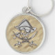 A silver chrome like nautical pirate skull applique on a sandy beach decor. An original device gift sure to make an impression on, or off the boat.