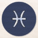 Silver Pisces Zodiac Sign Blue Carbon Fibre Print Round Paper Coaster