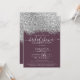 The elegant, glamourous, and modern bridal shower party invitation is perfect for the contemporary and stylish bride-to-be. It features a faux printed silver sparkly glitter confetti speckled colour block on top of a simple cassis plum purple background. The back displays the same glitter but a thicker panel. This chic, luxury, and unique design will be a hit with all of your guests!