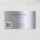 An elegant and glamourous business card with a faux silver metallic looking background decorated with purple and faux silver glitter drips on the front. Elegant black hand lettered style script. Personalise and add Your name, title, contact infor and your own QR code to your website.