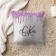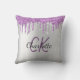 Silver purple glitter drips monogram name cushion