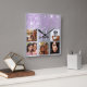 A unique gift or a treat for yourself celebrating her/your life with a collage of 5 of your own photos, pictures. Personalise and add a monogram letter. A faux silver metallic looking background. Grey and black text. Decorated with purple faux glitter dust. The name is written with a modern hand lettered style script.