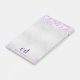 A faux silver metallic looking background. Decorated with purple faux glitter dust. Personalise and add your name and monogram initials. Purple coloured letters.