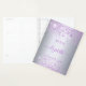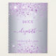 A faux silver looking background decorated with purple faux glitter. Personalise and add your name. The name is written with a modern hand lettered style script with swashes.