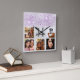 A unique gift or a treat for yourself celebrating her/your life with a collage of 5 of your own photos, pictures. Personalize and add a monogram letter. A bright faux silver looking background. Gray and black text. Decorated with purple faux glitter dust. The name is written with a modern hand lettered style script.