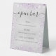 A faux silver loking background decorated with purple, violet faux glitter, sparkles. With the text: Open bar. Personalise and add your bar menu.