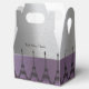This lovely gift favour box features an image of metallic silver and purple and the Eiffel Tower in silhouette. Personalise with your own message, or delete text to leave that blank. NOTE THAT ALL ELEMENTS ARE PRINTED EFFECTS.