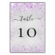 A faux silver background decorated with purple, violet, coloured faux glitter, sparkles. Personalise and add your table numbers. Add your numbers one by one.