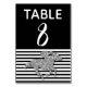 Table numbers featuring a faux silver glitter racehorse on black and white stripes at the bottom a solid black area at the bottom for your custom personalisation. *NOTE: CHANGE THE TABLE NUMBER, place in your shopping cart for each number you want to order. MATCHING items in our collection.