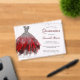 Invite your quinceañera guests in style with this elegant party invitation featuring a beautiful sparkly silver and red dress and your party details in grey and red typography calligraphy script for you to personalise bordered with faux silver glitter on a see thru acrylic background. Designed by Susan Coffey.