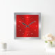 Silver & Red & Metallic Stainless Steel Square Wall Clock