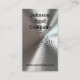 A silver metal look circular ripples or waves pattern surface is a unique and professional looking business card. Easily customise with your own information. Use the shown black font or easily change the font style and/or colour for complete customisation. A great card for industrial, construction, building, automotive, and other skilled trade occupations, as well as other artistic design professionals. More information can be put on the back as well onto the metal look background. Printed on paper, not actual metal. A strong business card that stands out from the rest.