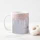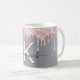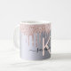 Elegant, glamourous gift for a friend, mother, sister or for yourself. Daux silver metallic looking background. Trendy rose gold, blush pink faux glitter drips, paint dripping look. Personalise and add a name and monogram letter. The name is written with a hand lettered style script with swashes. Rose gold and black coloured letters. To keep the swashes only delete the sample name, leave the spaces or emoji's in front and after the name.
