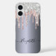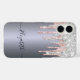 An elegant, girly and glam case. Faux silver and rose gold, pink drips. Chic dark faux silver looking background. Personalise and add your name. The name is written with a modern hand lettered style script. Dark grey coloured letters. To keep the swashes only delete the sample name, leave the spaces or emoji's in front and after the name