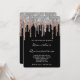 Silver Rose Gold Glitter Drips Black Quinceañera Invitation