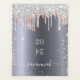 A faux silver metallic looking background with elegant rose gold, pink and faux silver glitter drips, paint drip look. Template for a year (upside down) Personalize and add a name. The name is written in white with a large modern hand lettered style script. Perfect for school, work or organizing your personal/family life. To keep the swashes only delete the sample name, leave the spaces or emoji's in front and after the name.