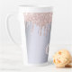 An elegant, girly and glam mug. Rose gold and pink faux glitter drip, paint dripping look. Chic faux silver metallic looking background. Personalise and add your monogram initials, letters x3. Rose gold coloured letters.