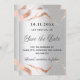 A modern and elegant Save the Date for a wedding. A faux silver looking background, decorated with rose gold marble veins. Personalise and add a date and your names. The text: Save the Date is written with a large trendy hand lettered style script.