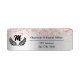 A faux silver looking background. Decorated with a laurel wreath and rose gold confetti, sparkles. Personalise and add your name, address and family monogram initial.