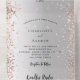 A faux silver looking background decorated with rose gold confetti. Personalise and add your monogram initials, names, and wedding details. Black coloured letters.