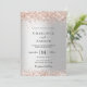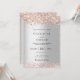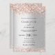 A modern, formal wedding invitation. A faux silver looking background. Decorated with rose gold faux sparkles, confetti. Personalise and add your names and party details.