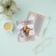A modern wedding Save the Date photo note. A faux silver looking background decorated with rose gold faux glitter, sparkles. Personalise and add your photo, wedding details.