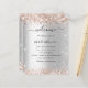 A modern, elegant wedding program, timeline. A faux silver looking background decorated with rose gold confetti. Personalise and add your names and wedding details. Black coloured letters. If you have more text it's possible to reduce the line space.
