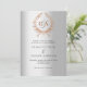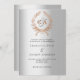 A faux silver looking background. A rose gold wreath. Personalise and add your monogram initials, names, and details.