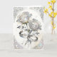 Silver and white roses, a silver frame, and two silver wedding rings makes this the perfect card for a 25th wedding anniversary.