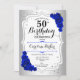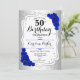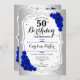 Silver Royal Blue Photo Elegant 50th Birthday Invitation