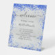 A faux silver background, decorated with royal blue confetti, sparkles. Black text. Personalise and add your names and the wedding program.