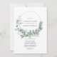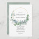 Forest eucalyptus greenery Celebration of Life invitation with gold geometric frame and silver sage watercolor wash reverse customisable to your event specifics.