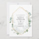 Wild forest woodland eucalyptus herbarium in shades of green bridesmaids luncheon invite with gold geometric frame and silver sage reverse.