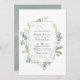 Wild forest woodland eucalyptus herbarium wedding photo invitation with gold geometric frame and silver sage watercolor wash reverse designed to be quickly and easily customised to your event specifics. Ideal for any given theme or garden wedding. The QR code on the reverse directs to your wedding site where people can learn more and rsvp.