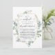 Wild forest woodland eucalyptus herbarium online long distance virtual wedding ceremony invitation announcement with gold geometric frame and silver sage watercolor wash reverse.