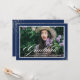 Silver Script Glitter Navy Blue Photo Graduation Invitation