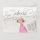Feauturing the word cheers in lovely silver filligree swirl typography that reaches across both sides of the postcard. Your photo sits under the text.