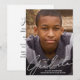 This simple, modern graduation card features a faux silver foil script overlay and full photo. On the front, "Graduate" is displayed along the bottom in handwritten script over a large, vertical photo. Add your graduate's name and photo, graduation year, and school to the front. On the back, you can add graduation party details.