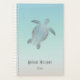 Elegant silver turtle and your name on an abstract beach style background in turquoise and sand/beige. Modern coastal maritime design for him and her.