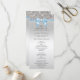 Elegant custom silver and baby blue wedding program with a beautiful glittery silver printed image sequins jewels, gems pattern, cute, sophisticated shiny blue printed bow and ribbon and pretty digital diamond bling jewel with grey text on a silver gradient background. If you need any assistance customising your product please contact me through my store and I will be happy to help. PLEASE NOTE: These are flat printed graphics - not real bows, jewels or sequins.