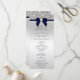 Elegant custom silver and navy blue wedding program with a beautiful glittery silver printed image sequins jewels, gems pattern, cute, sophisticated shiny blue printed bow and ribbon and pretty digital diamond bling jewel with grey text on a silver gradient background. If you need any assistance customising your product please contact me through my store and I will be happy to help. PLEASE NOTE: These are flat printed graphics - not real bows, jewels or sequins.