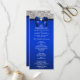 Elegant custom royal blue and silver wedding program with a beautiful glittery silver printed image sequins jewels, gems pattern, cute, sophisticated shiny blue printed bow and ribbon and pretty digital diamond bling jewel with grey text on a royal blue gradient background. If you need any assistance customising your product please contact me through my store and I will be happy to help. PLEASE NOTE: These are flat printed graphics - not real bows, jewels or sequins.