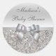 Personalised elegant custom silver Baby Shower stickers, for favours or envelope seals, with a beautiful printed silver sequins pattern, a cute shiny silver printed bow and ribbon and pretty printed diamond bling jewel. Text, font and colour of font can all be customised. If you need assistance customising your product please contact me through my store. I will be happy to help. I have matching products in my store.