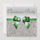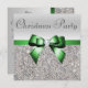 Silver Sequins Christmas Party Green Diamond Bow Invitation