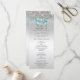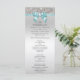 Elegant custom silver and light teal blue wedding program with a beautiful glittery silver printed image sequins jewels, gems pattern, cute, sophisticated shiny printed bow and ribbon and pretty digital diamond bling jewel with grey text on a silver gradient background. If you need any assistance customising your product please contact me through my store and I will be happy to help. PLEASE NOTE: These are flat printed graphics - not real bows, jewels or sequins.