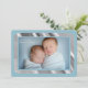 Introduce your baby in style with this trendy, new design. The blue invitation is trimmed in shimmering silver.