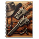 A painting featuring two gleaming revolvers and a weathered cowboy hat, capturing the essence of the wild west.